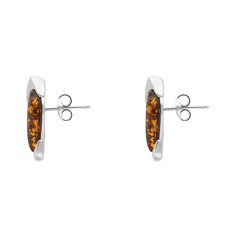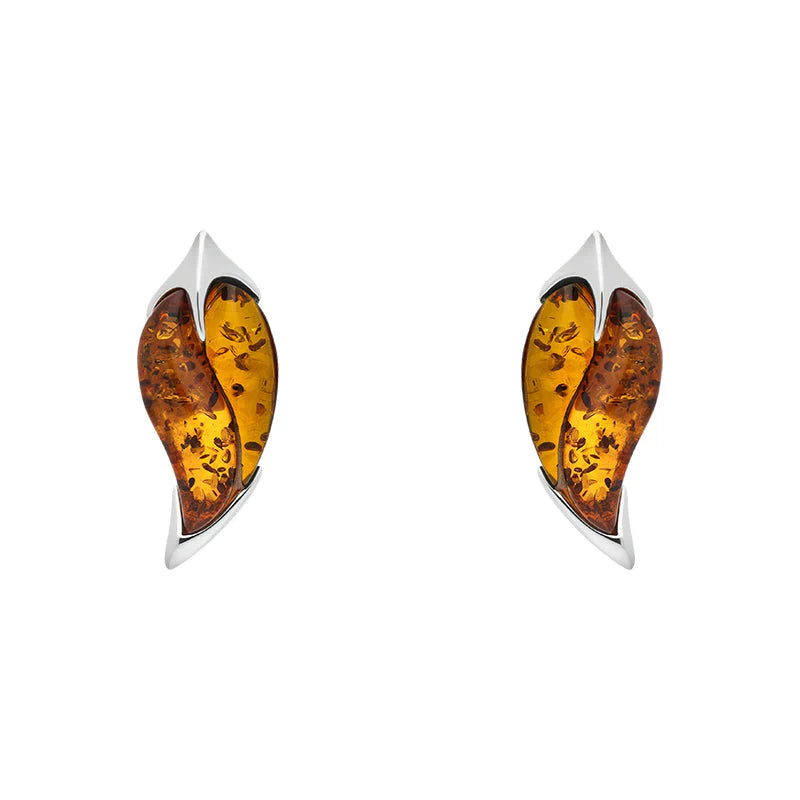 Sterling Silver Amber Leaf Stud Earrings E1574.