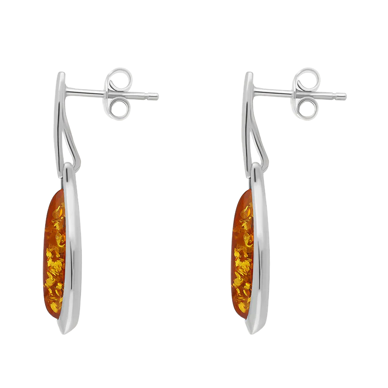 Sterling Silver Amber Long Pear Drop Earrings - E1556 (SGN-521)