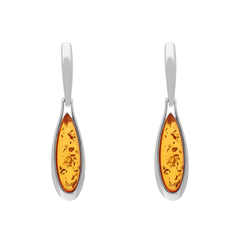 Sterling Silver Amber Long Pear Drop Earrings E1556
