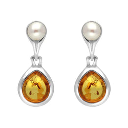 Sterling Silver Amber Pearl Drop Earrings, E1892.