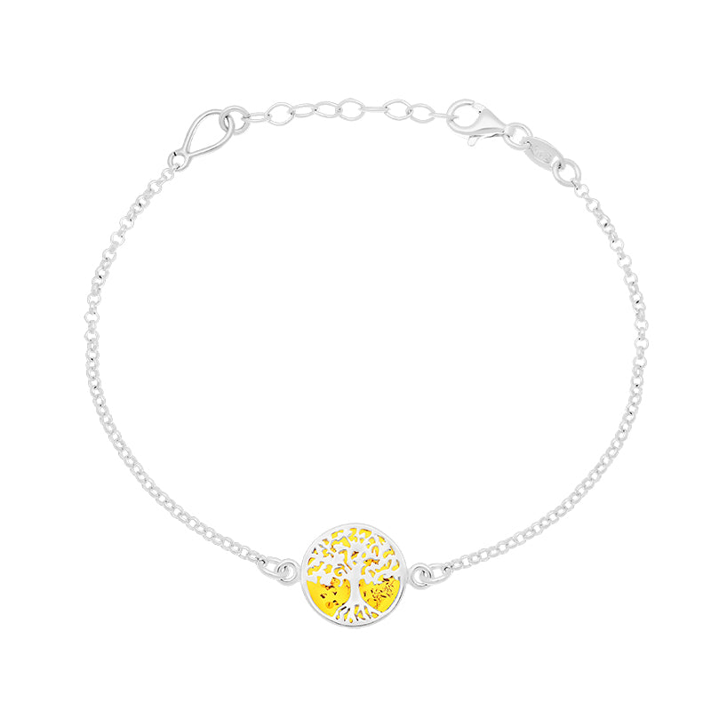 Sterling Silver Amber Round Tree of Life Chain Bracelet - B1249 (TOL-153)