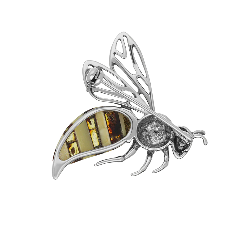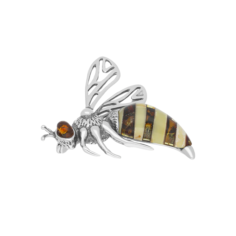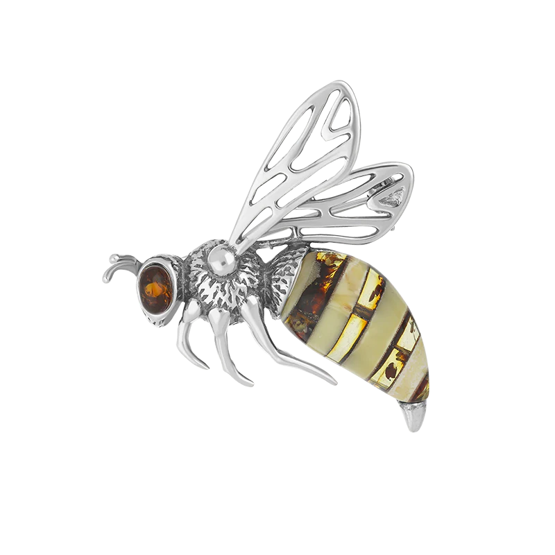 This feminine brooch features the finest Baltic Amber.The stones are set in sterling silver and the filigree wings give the bee a lifelike appearance. Perfect for everyday wear.