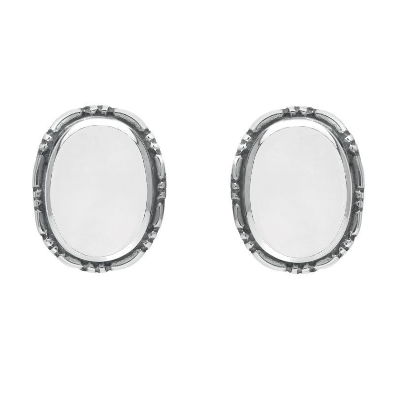 Sterling Silver Bauxite Oval Rope Edge Stud Earrings, E141