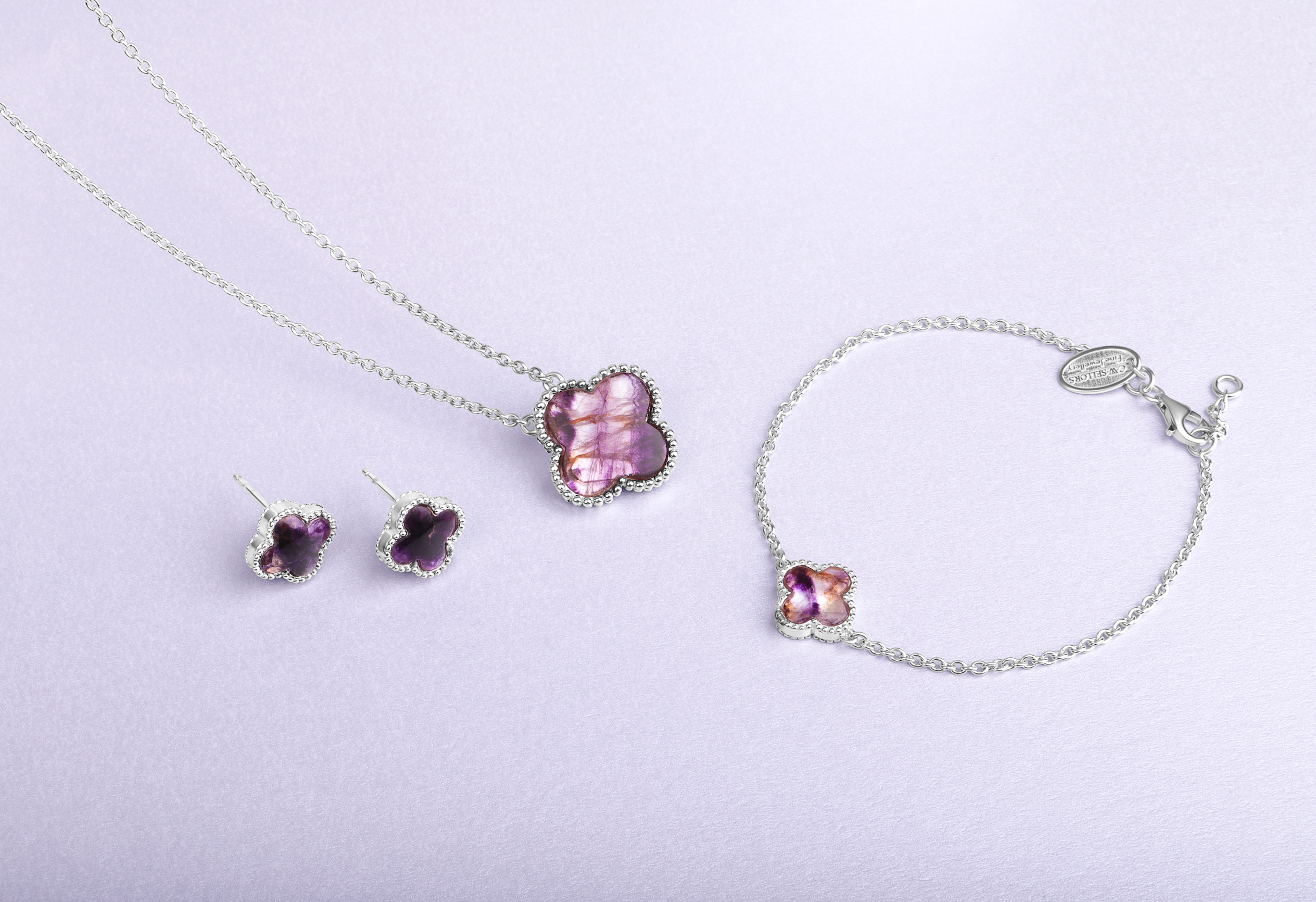 This elegant bracelet features a stunning four leaf clover shaped cabochon of the finest Blue John stone, that has been sourced directly from the Derbyshire Blue John Cavern in Castleton. The clover is surrounded with ball detail for a unique, stylish finish. The striking Blue John forms a stunning contrast between the sterling silver chain, creating the perfect look for every occasion.
