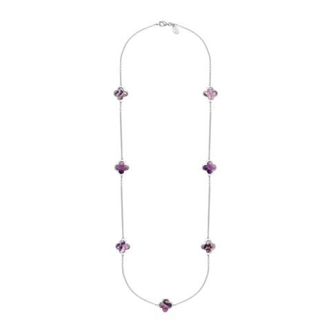 Sterling Silver Blue John Bloom Four Leaf Clover Long Necklace