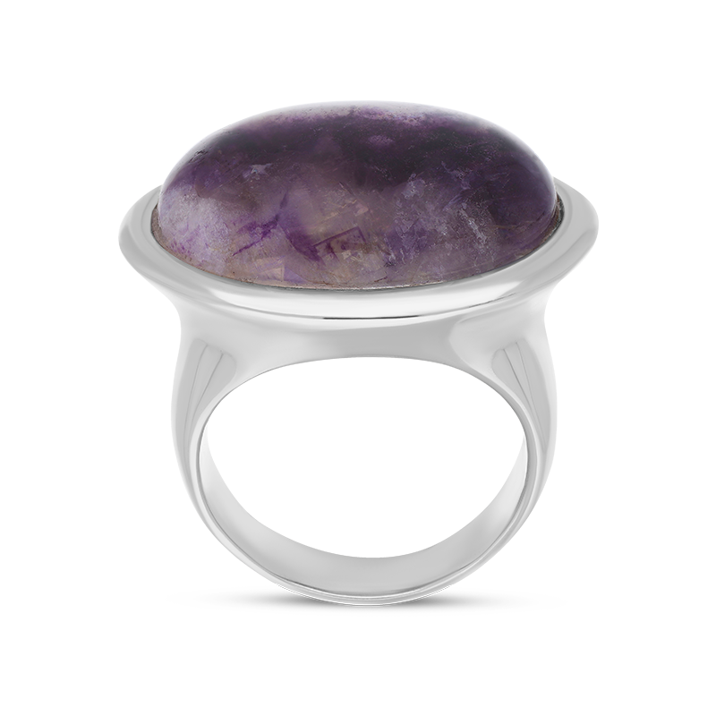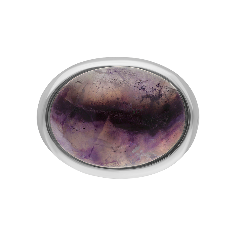 A classic, wide oval shaped sterling silver and Blue John ring. The hand polished oval Blue John gemstone sits proudly, making this ring a flattering shape for a multitude of fingers and a popular style choice. The gemstone has been sourced directly from Castleton, Derbyshire. Dimensions: 24mm x 18mm.
