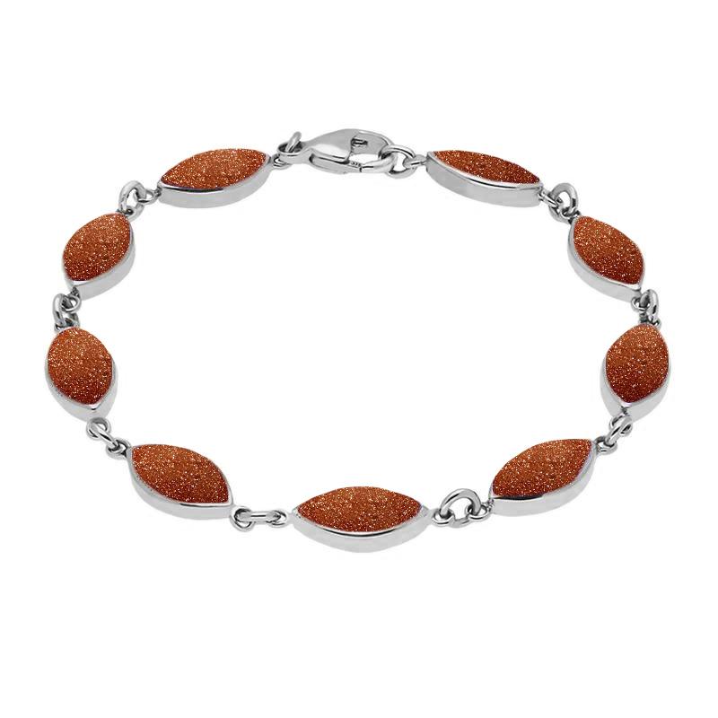 Sterling Silver Brown Goldstone Marquise Bracelet, B184