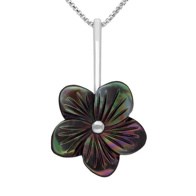C W Sellors Sterling Silver Dark Mother of Pearl Pansy Tuberose Necklace, P2853.