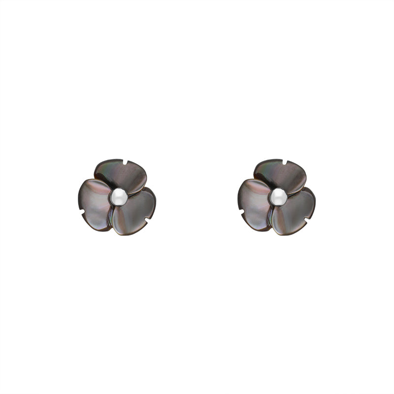 Sterling Silver Dark Mother of Pearl Tuberose Clover Stud Earrings, E2159.