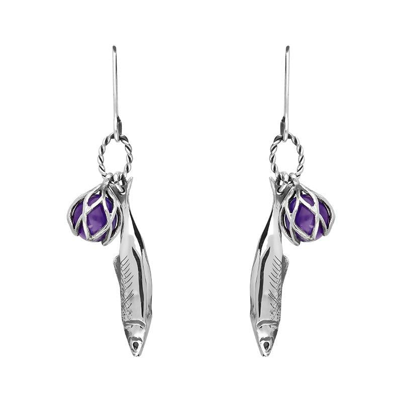 Sterling Silver Emma Stothard Silver Darling Amethyst Float Charm Hook Earrings - E2582 (EST-022)