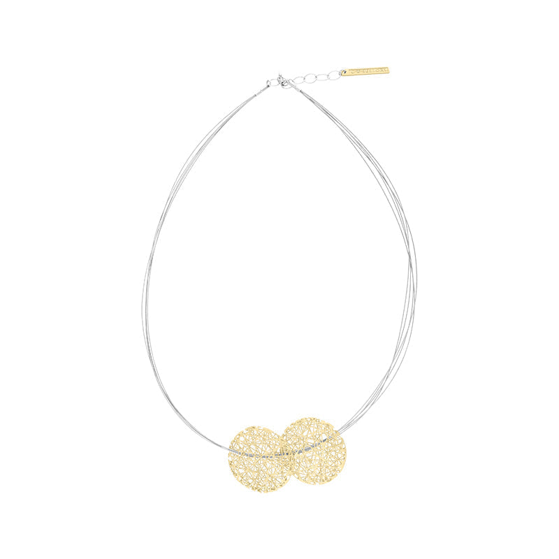 Sterling Silver Gold Plated Open Wire Double Disc Necklace D