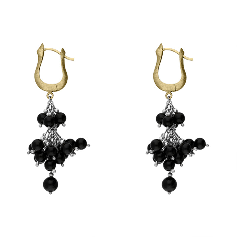 Sterling Silver Gold Plated Whitby Jet Bead Drop Earrings D - E1079 (76717)