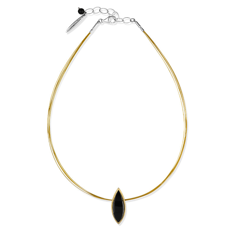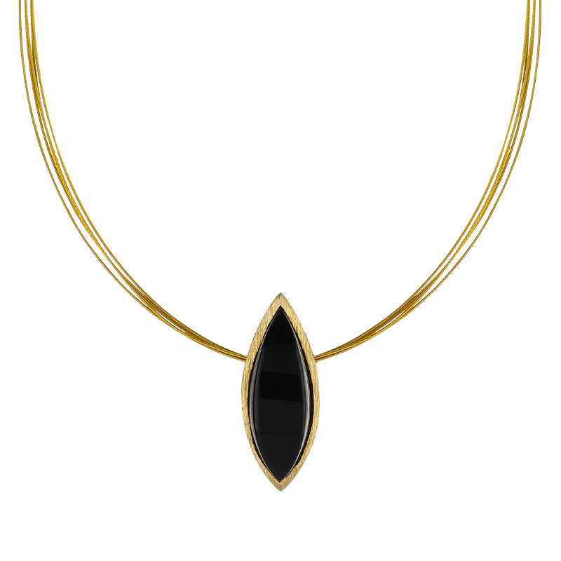 Sterling Silver Gold Plated Whitby Jet Marquise Necklace D