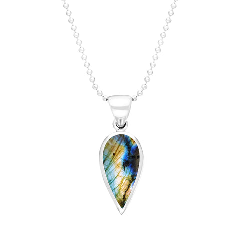 Sterling Silver Labradorite Small Upside Down Pear Necklace - P389 (00173372)