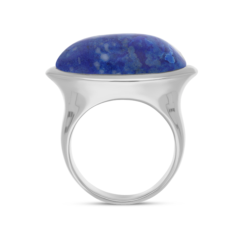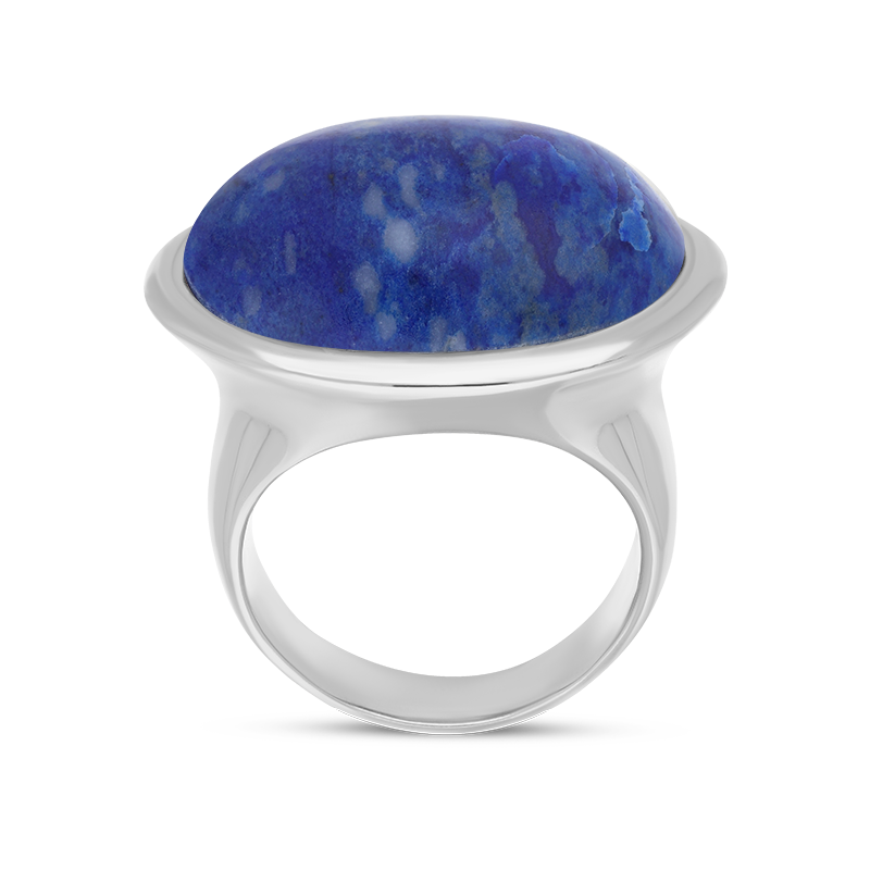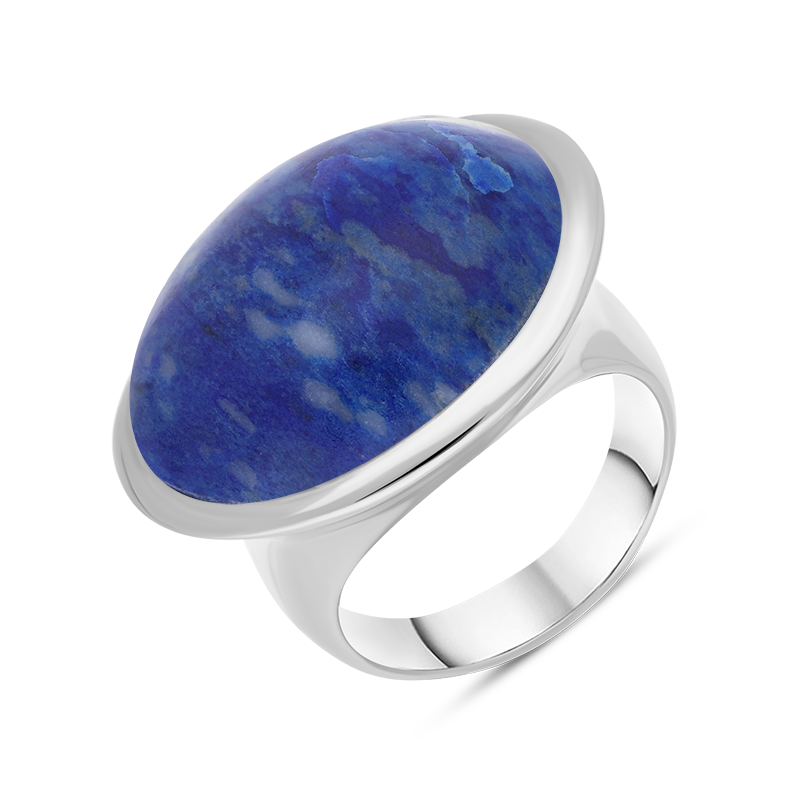 A classic, wide oval shaped sterling silver and Lapis Lazuli ring. The hand polished oval Lapis Lazuli gemstone sits proudly, making this ring a flattering shape for a multitude of fingers and a popular style choice. Dimensions: 24mm x 18mm.