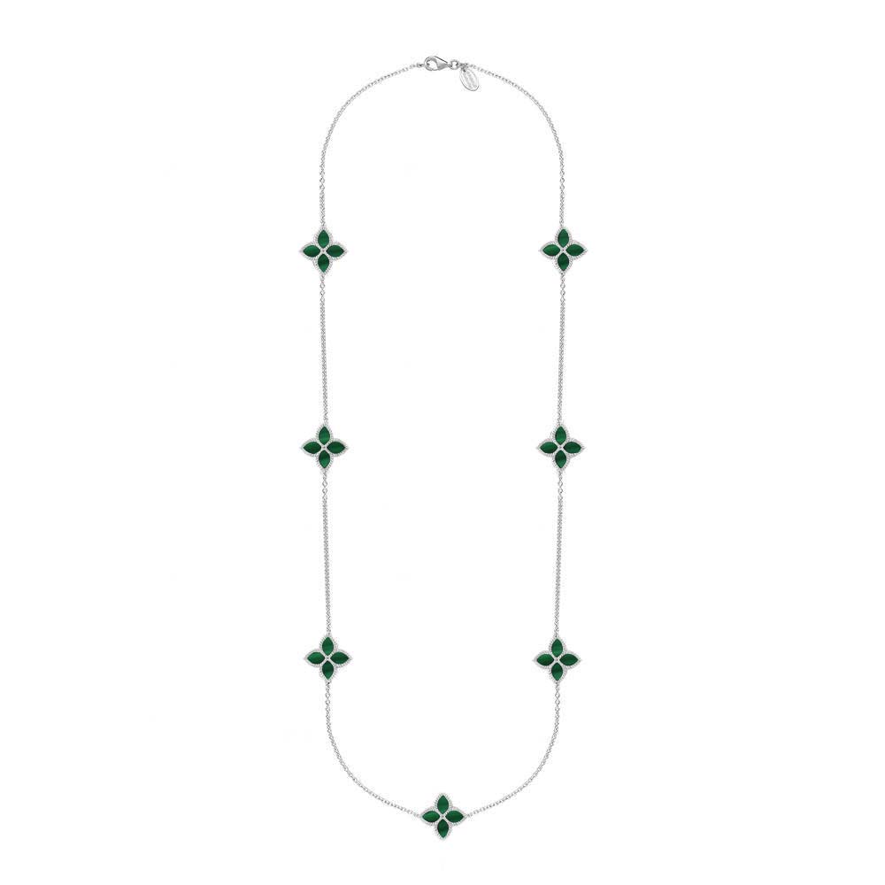 Sterling Silver Malachite Eden Long Marquise Flower Necklace
