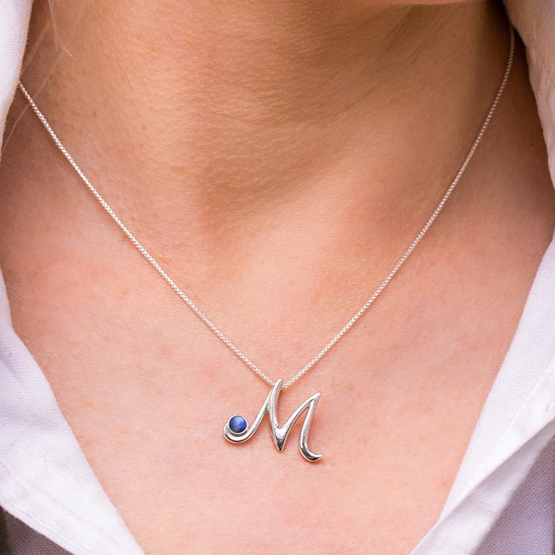 From the new 'Love Letters' collection designed and handcrafted in our very own workshop, this sterling silver necklace features an initial 'G' with a circular Moonstone. The pendant and stone hang elegantly from a 18 inch sterling silver chain.
