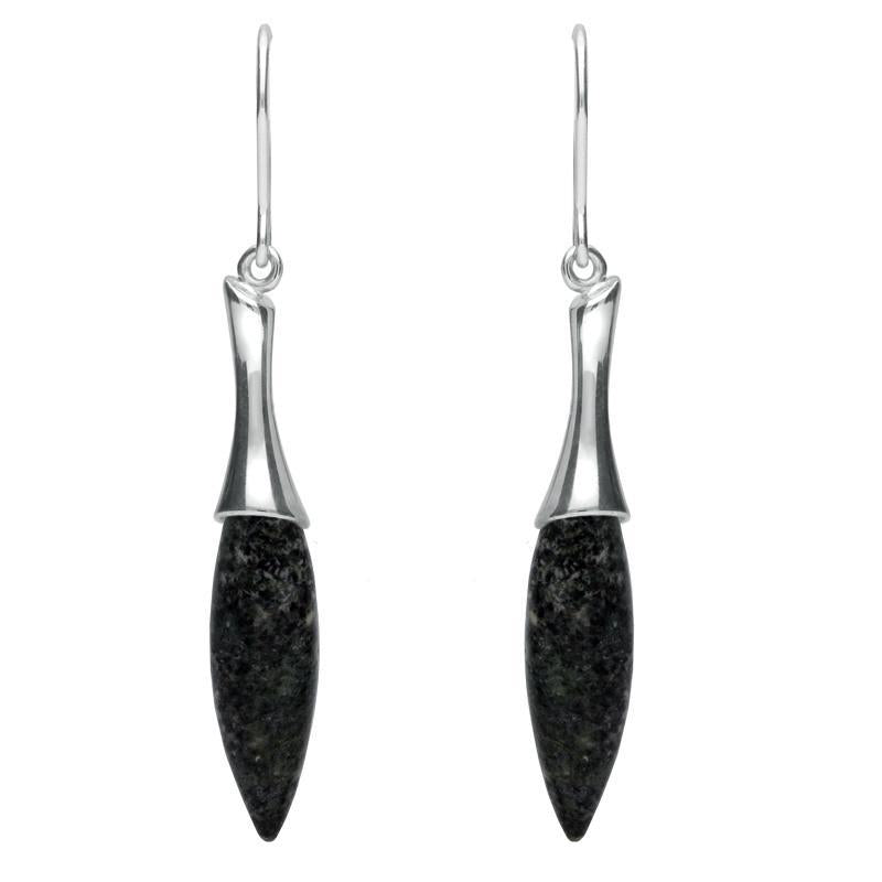 C W Sellors Sterling Silver Preseli Bluestone Tapered Drop Earrings, E1546.