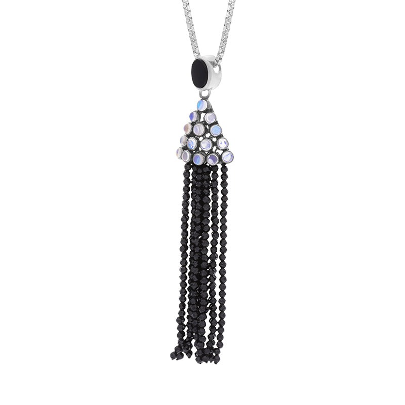 Sterling Silver Rhodium Onyx Moonstone Cascade Large Tassel Necklace D - PUNQ0005267 (UNQ-2828)