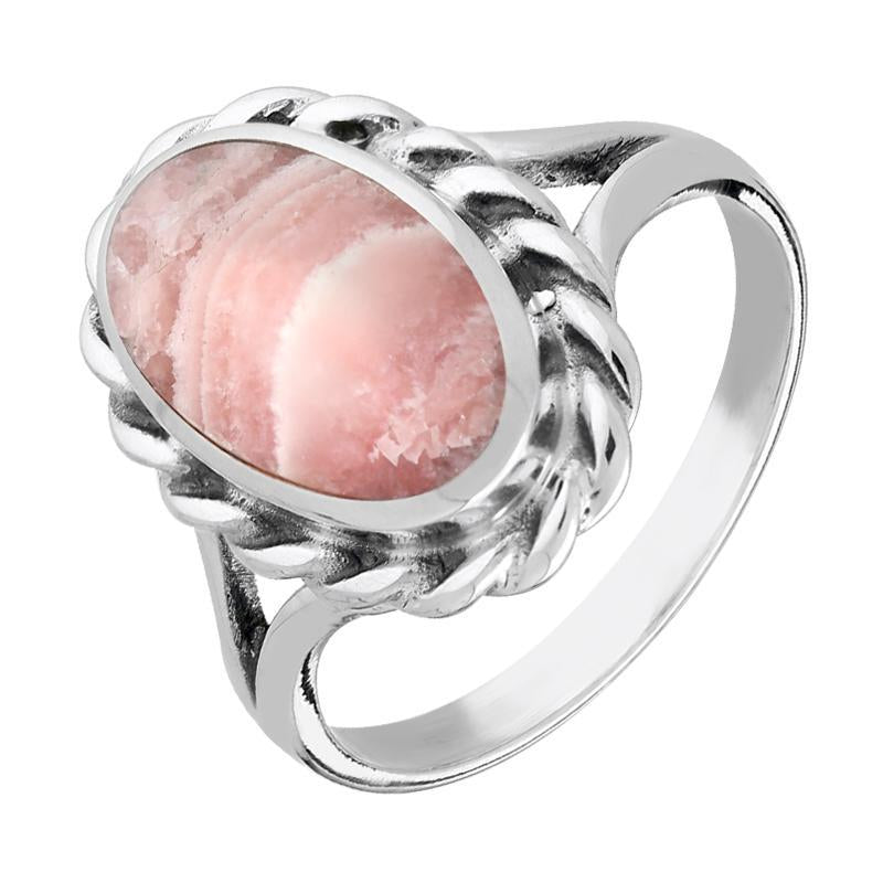 Sterling Silver Rhodochrosite Heavy Oval Rope Edge Ring