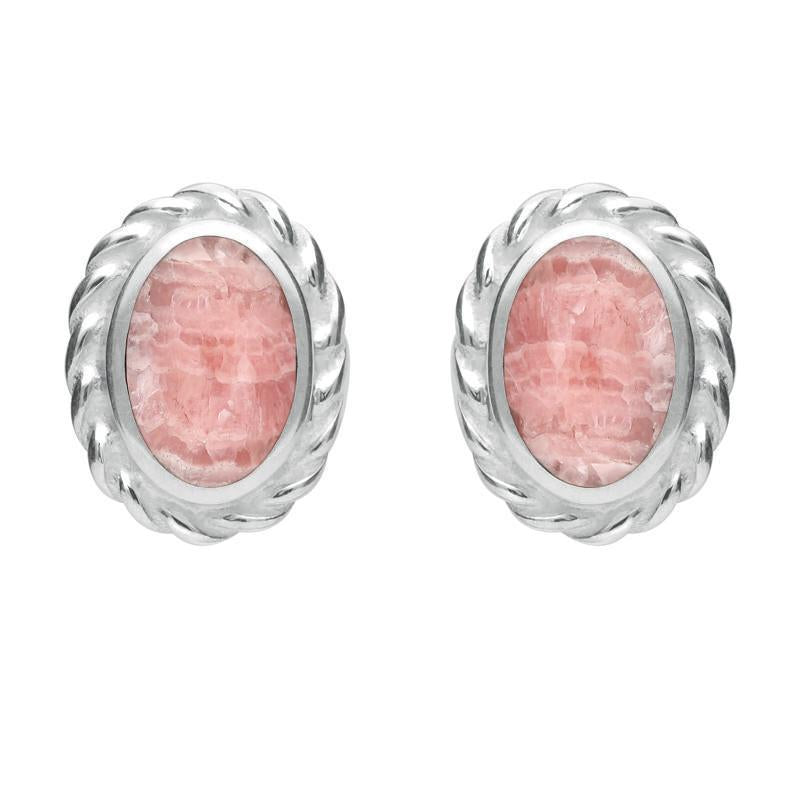 Sterling Silver Rhodochrosite Oval Rope Edge Stud Earrings