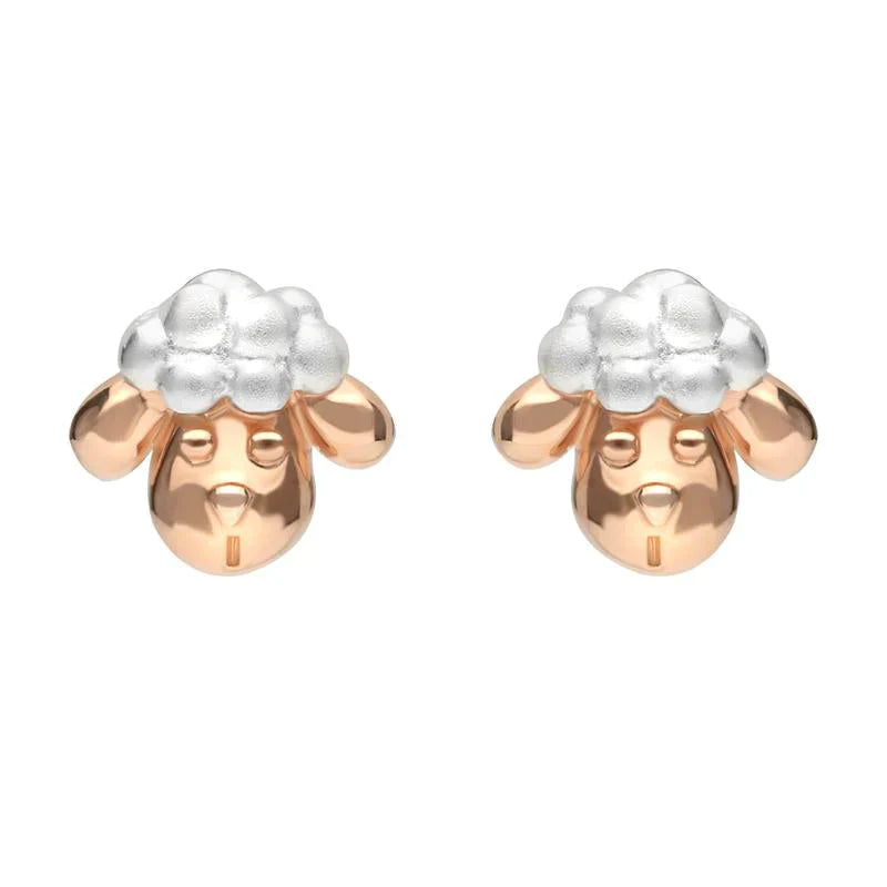 Rose Gold Plated Sterling Silver Sheep Head Earrings, E2231