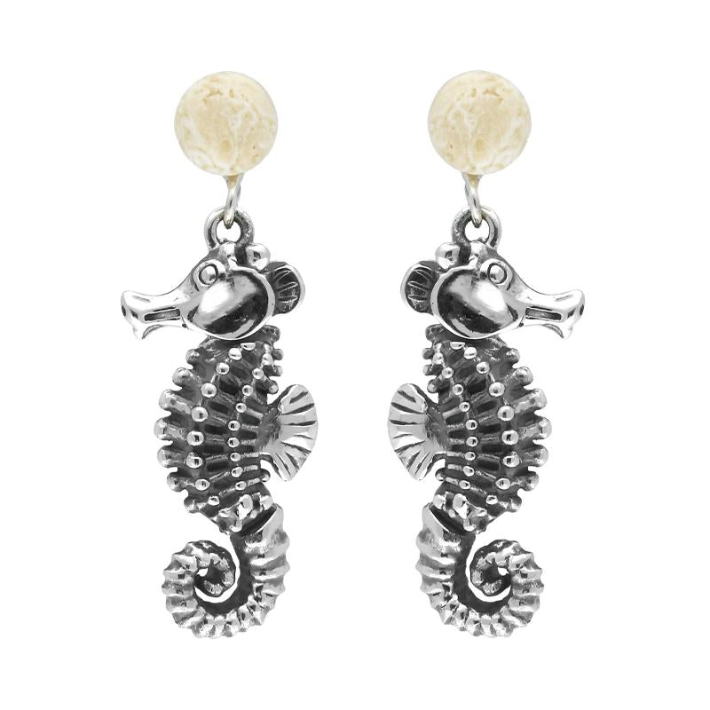 Sterling Silver Small Stone Coquina Seahorse Drop Earrings, E1936