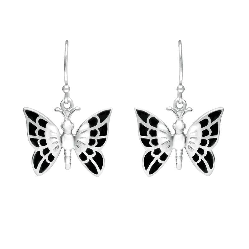 Sterling Silver Whitby Jet Butterfly Drop Earrings