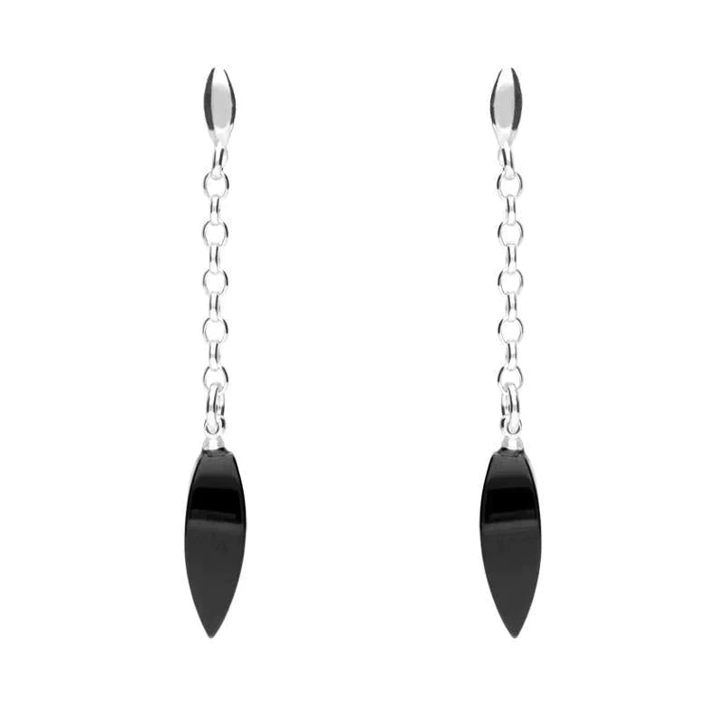 Sterling Silver Whitby Jet Chain Drop Earrings E1794.