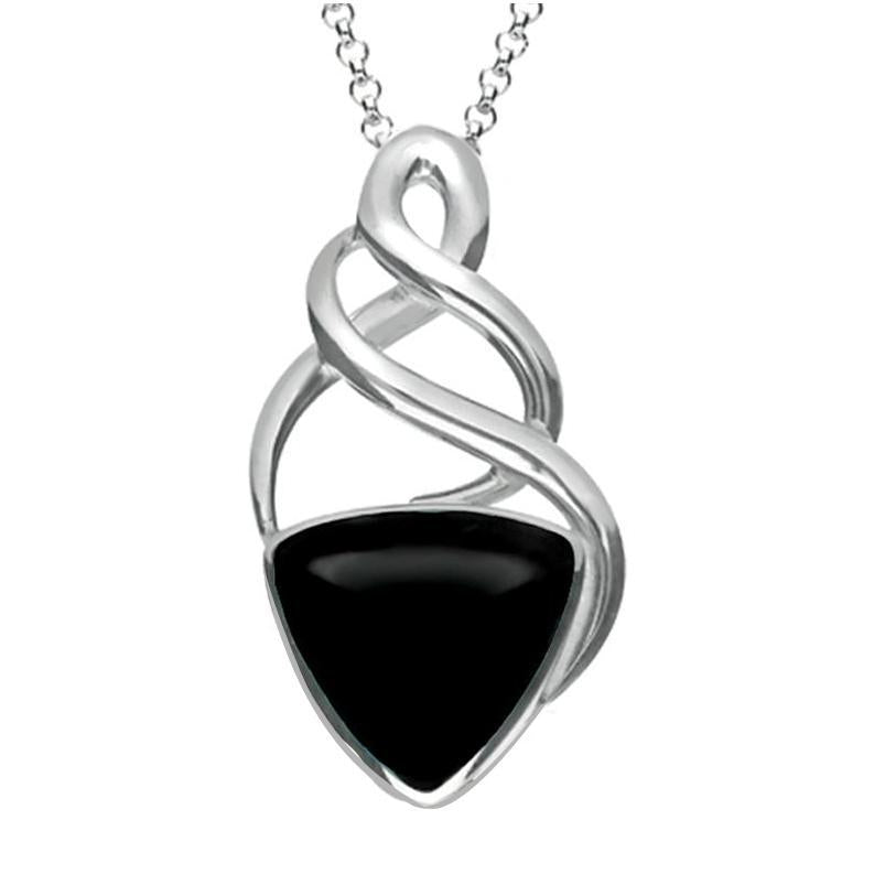 C W Sellors Sterling Silver Whitby Jet Curved Triangle Celtic Necklace, P2458.