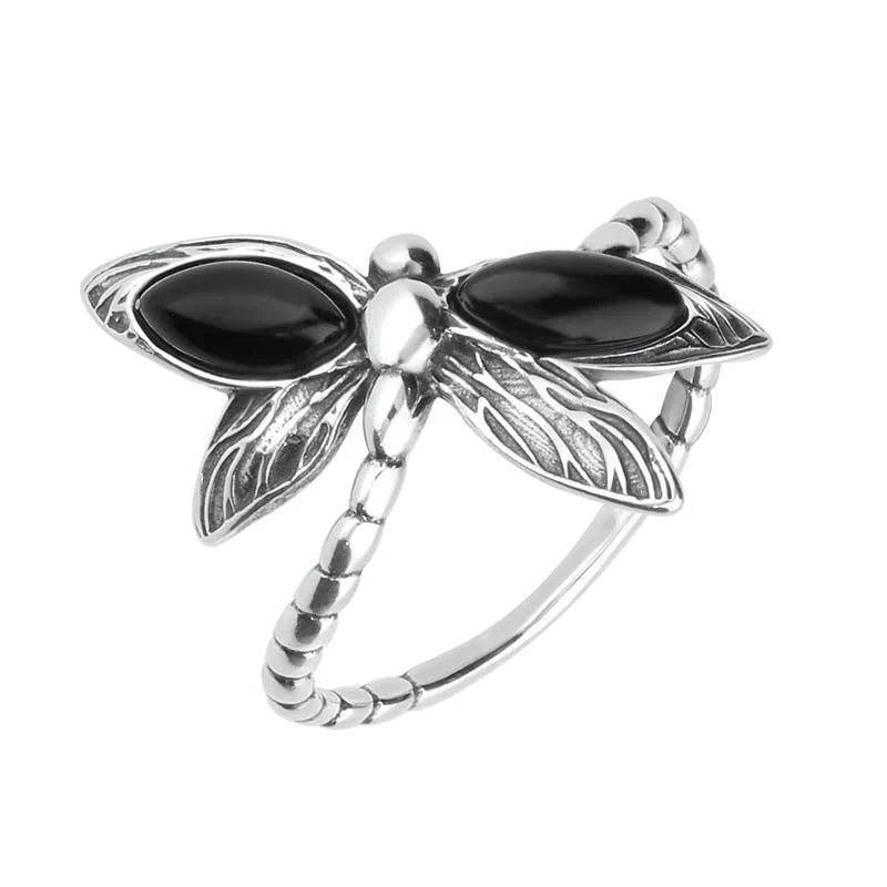 Sterling Silver Whitby Jet Dragonfly Ring - R1170 (SGN-923)