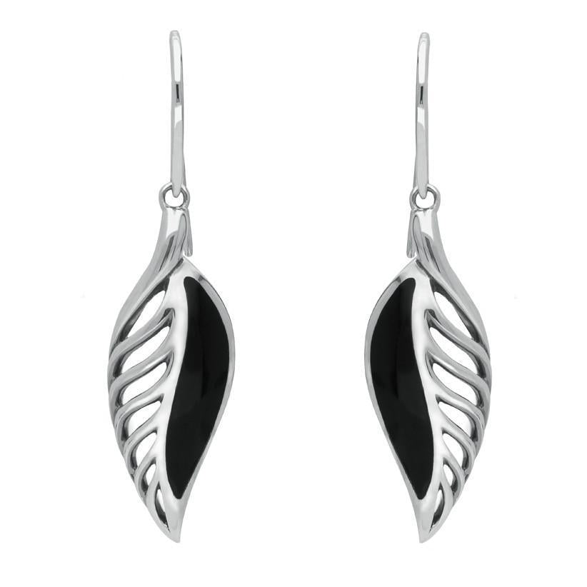 Sterling Silver Whitby Jet Essence Leaf Hook Drop Earrings, E2020.
