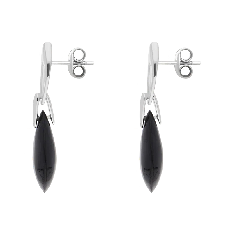 Sterling Silver Whitby Jet Flat Pear Shaped Drop Earrings E2563