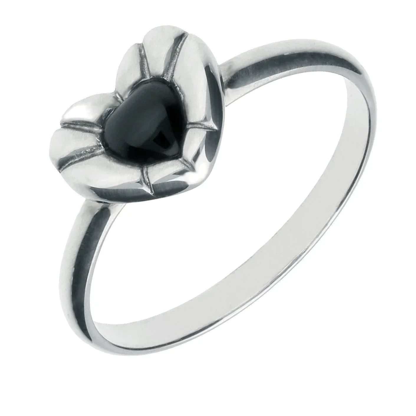 Sterling Silver Whitby Jet Heritage Heart Stone Ridged Edge Ring