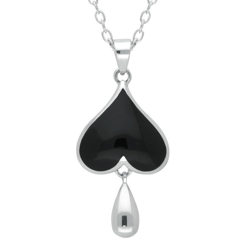 Sterling Silver Whitby Jet Inverted Heart Teardrop Necklace, P2716.