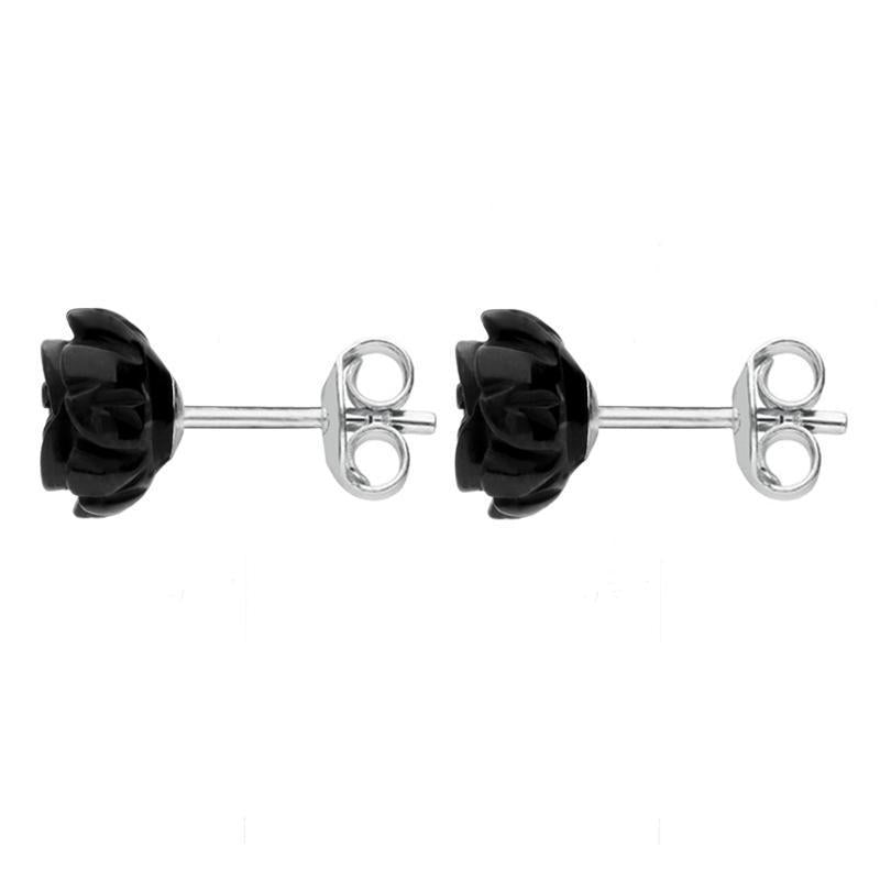 Sterling Silver Whitby Jet Tuberose Carved Rose Three Piece Set (TBR-296)