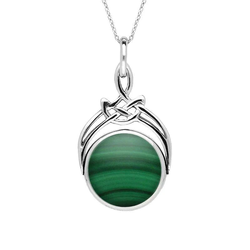 Sterling Silver Whitby Jet Malachite Round Swivel Fob Necklace, P258_12.