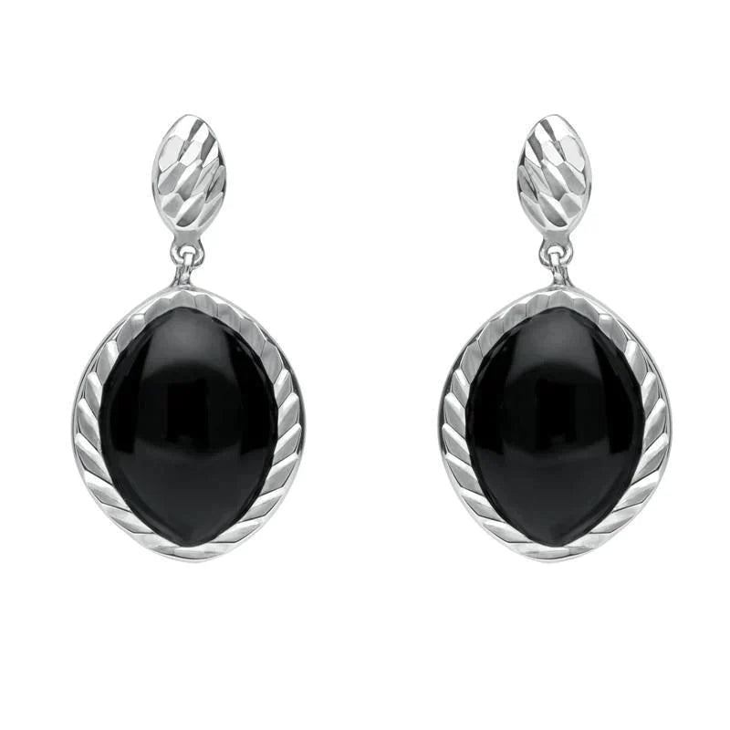 Sterling Silver Whitby Jet Marquise Drop Earrings