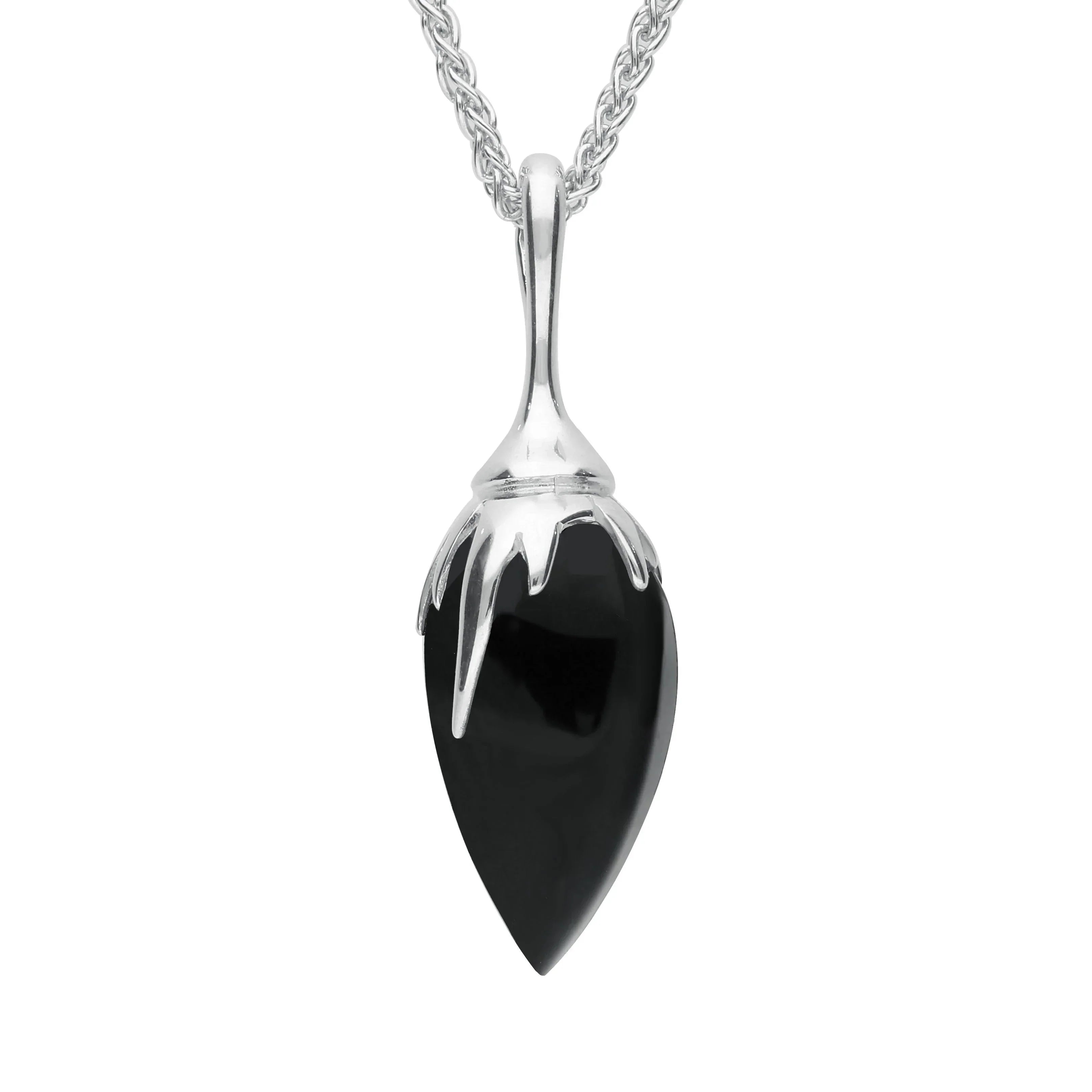 Sterling Silver Whitby Jet Plant Bud Necklace