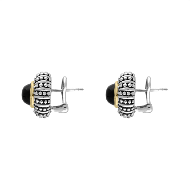 Sterling Silver Whitby Jet Round Beaded Edge Omega Clip Earrings D