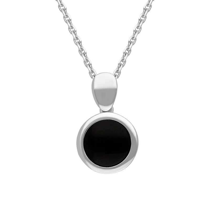 Sterling Silver Whitby Jet Round Open Back Necklace, P1981.
