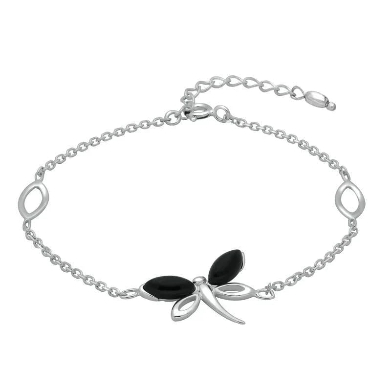 Sterling Silver Whitby Jet Single Butterfly Bracelet - B999 (SGN-866)