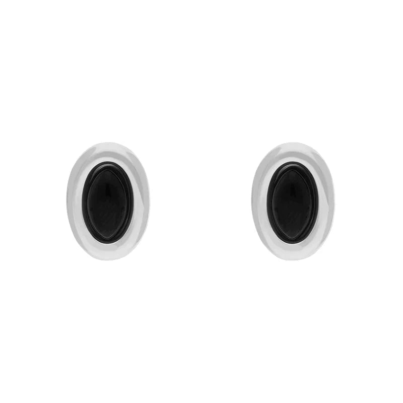 Sterling Silver Whitby Jet Small Oval Stud Earrings