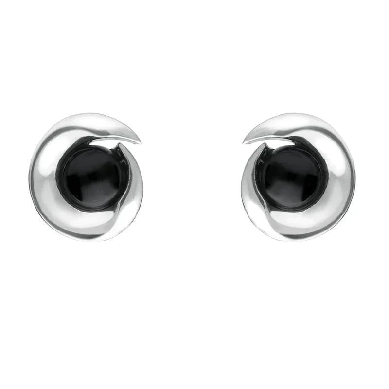 Sterling Silver Whitby Jet Spiral Stud Earrings