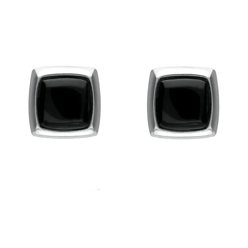 Sterling Silver Whitby Jet Square Edge Stud Earrings