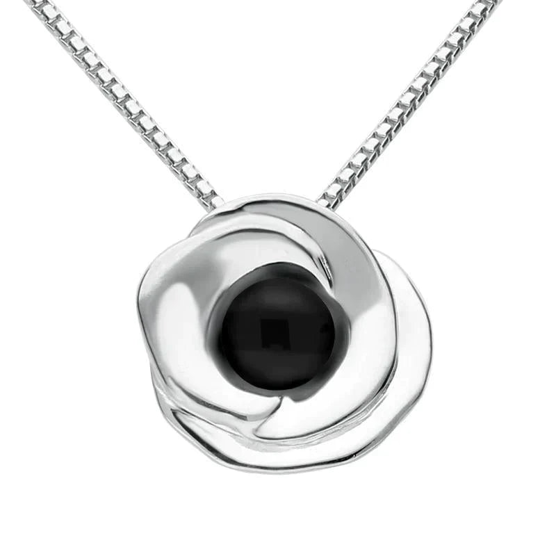 Sterling Silver Whitby Jet Stone Rose Necklace