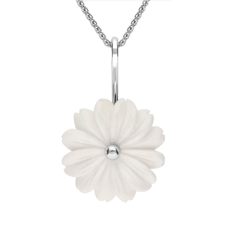 Sterling Silver White Agate Daisy Tuberose Necklace, P2855