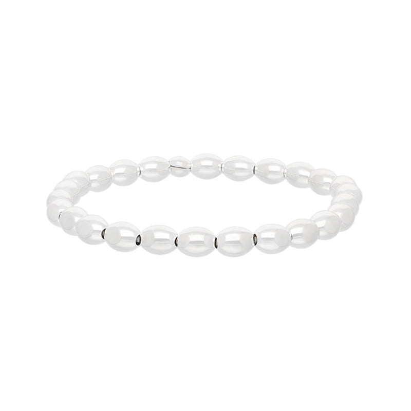 This charming bracelet is made from oval white silver beads, making the perfect item for someone looking for a beautifully classic piece.