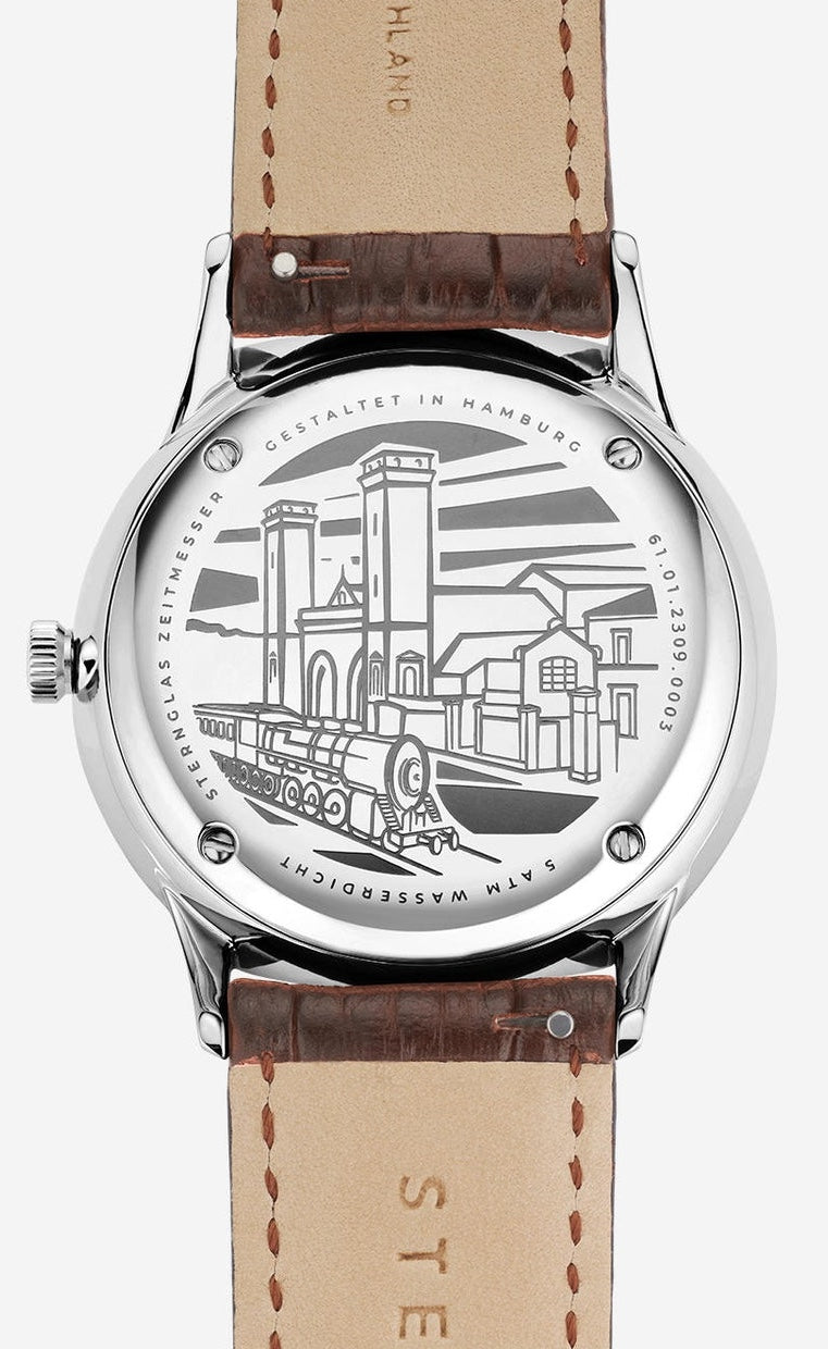 Sternglas Watch Berlin Green S01-BE08-HE05. For a long time STERNGLAS watches have been asked for a swimming and diving watch. Several prototypes later Sternglas can now present their first timepiece in this distinctive style. In order to achieve a particular high water resistance the case back and the crown are screwed. The watch case is manufactured using high quality steel and equipped with Sapphire Glass. As a visual highlight you find on the reverse an engraving of an abstracted seabed.