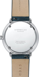 Sternglas Watch Hamburg Quartz Leather S01-HH10-VI13. For a long time STERNGLAS watches have been asked for a swimming and diving watch. Several prototypes later Sternglas can now present their first timepiece in this distinctive style. In order to achieve a particular high water resistance the case back and the crown are screwed. The watch case is manufactured using high quality steel and equipped with Sapphire Glass. As a visual highlight you find on the reverse an engraving of an abstracted seabed.